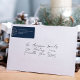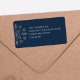 Ce design comprend une étiquette d'adresse de retour marine bleu argent de Noël avec un flocon de neige design classique élégant, un joli joli caprice de Noël simple, étiquette d'adresse de retour de Noël, enveloppe de vacances de Noël sceau, une famille personnalisée customisée, avec adresse de nom ville, simpliste d'élégance créative minimaliste, avec texte blanc en lettres simples, un style de bloc en lettres nom de famille