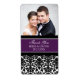 Elégant Mariage merci étiquettes modèles photo sur mesure en violet foncé élégant, noir et blanc avec motif damassé vintage fleuri classique et romantique, l'ajout parfait à votre mariage, disponible dans une large sélection de produits mariages assortis. Parfait pour les faveurs de mariage ou les étiquettes de bouteille de vin mariage.