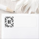 Un magnifique étiquette damassé noir & blanc avec un ovale contenant la lettre H.