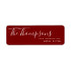 Étiquettes d'adresse de retour imprimées - Nom de famille Noël Rouge moderne - Élégant chic - Pour toute personne qui apprécie le caractère audacieux de son nom de famille en calligraphie sophistiquée avec un riche arrière - plan rouge pour mélanger et associer invitations de vacances et autres cartes de Noël de vacances — DÉTAILS DU PRODUIT : 30 étiquettes par feuille ! Taille du étiquette : 2,25" L x 0,75" H ; Taille de la feuille L x 11" H Type de papier : Finition mate. Personnalisable : Ajoutez vos informations pour en faire votre propre — COMMANDE FACILE : 1. Utilisez le menu déroulant pour sélectionner le nombre de feuilles étiquettes que vous souhaitez. 2. Utilisez la zone bleue personnaliser pour entrer vos informations dans le modèle 3. Double vérification orthographique 4. Ajouter l'article à votre panier et retirer — INFORMATIONS IMPORTANTES : (Livraison GRATUITE avec l'adhésion Zazzle Plus - voir page principale pour plus de détails)