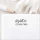 Vous pouvez modifier le texte noir pour afficher le nom et le numéro de téléphone corrects. Le nom est dans un script élégant et cursif. Les étiquettes d'adresse de retour sont blanches.