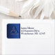 Cette étiquette d'adresse de retour de noeud bleu marine et blanc celtique correspond au faire-part de mariage ci-dessous.