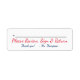 Cette conception étiquette comprend la demande "Veuillez revoir, signer et retourner", ainsi qu'une ligne de signature et le nom d'un enseignant personnalisé. Il pourrait être utilisé par un enseignant, par exemple, pour demander à un parent ou à un tuteur d'examiner et de reconnaître la marque reçue par un enfant lors d'une affectation.