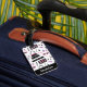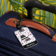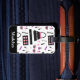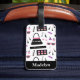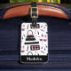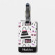 Une étiquette à la mode et élégante de bagage pour la diva de déplacement de Fashionista ! Le motif dans la combinaison de couleurs de rose, de noir et de pourpre est créé utilisant de divers cosmétiques, maquillage et accessoires de mode comme le sac à main avec la copie de zèbre, le mascara, les vernis à ongles, les boucles d'oreille d'étoile, les nuances roses de lunettes de soleil, le peigne, les rouges à lèvres et les lustres de lèvre, brosse et rougit boîte de palette. Personnalisez avec le nom de filles. Le texte "Fashionista" cependant n'est pas editable.