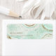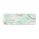 Vous obtenez à la fois le glamour et l'impact élevé avec cet ensemble de mariage de coordination qui comprend des motifs d'agate abstraits, texturés avec des faux cristaux et des reflets dans un film d'or scintillant. Des combinaisons de couleurs éclatantes, comme cette suite avec sa palette pastel douce du vert menthe au bleu turquoise, créent l'arrière - plan pour les pièces de cet ensemble coordonné. Cette étiquette d'adresse de retour de mariage contient tous les éléments ci-dessus ainsi qu'un modèle pour ajouter facilement vos noms et adresses. Affichez le lien de collection sur cette page pour voir tous les éléments correspondants dans cette belle conception ou recherchez ID827 pour voir des choix de couleurs supplémentaires.