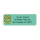Ces étiquettes d'adresses de retour ont un design moderne du milieu du siècle des ovales vertes avec ovales et cercles en eux les faisant ressembler à des oeufs dans des couleurs rétro de rouge, jaune, bleu, vert, marron et orange sur un champ de bleu clair.