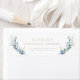 Des branches d'olivier peintes à la main ornent cette adresse funéraire délicate et élégante avec des accents d'aqua doux, bleu et or