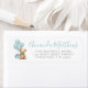 "We can BEARly wait" Baby shower Adresse de retour Label. Cette adorable étiquette d'adresse de retour comporte un joli ours en peluche bronzé avec un arc bleu turquoise, tenant des ballons turquoises d'aquarelle, placé sur le côté gauche. Le côté droit affiche votre nom dans un script bleu doux et élégant avec l'adresse dans une police serif gris classique. Le design charmant, avec une boîte cadeau turquoise, est parfait pour le baby shower d'un bébé. Le mélange de polices joueuses et élégantes ajoute une touche douce, et vous pouvez customiser les couleurs et l'arrière - plan pour correspondre à votre thème. Tous les textes, polices et couleurs peuvent être customisés pour correspondre à votre style d'événement.