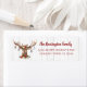 Ornements rustiques de rennes de Noël sur bois blanc Retourner Adresse Étiquettes avec un mignon cerf de fête orné d'ornements boisés, contre un arrière - plan rustique en bois blanc. Facile d'ajouter votre nom et votre adresse; l'ajout parfait à vos cartes de fin de année!