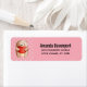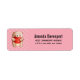Étiquettes de adresse avec une jolie illustration aquarelle. Un ours en peluche brun portant un grand coeur rouge. Pois jaune clair sur un arrière - plan rose.