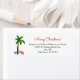 Palmier aux lumières des arbres de Noël, et cadeaux en dessous. Un thème amusant de plage tropicale ou d'île, comme un design de Noël dans les couleurs de vacances de rouge et vert. Joyeux Noël est écrit comme le salut ou le changement à Joyeux Jours fériés ou tout court libellé. Il vous suffit de personnaliser avec votre nom de famille et votre adresse ou tout libellé jusqu'à 4 lignes. Amusant et festif pour les vacances. Remarque : le libellé est petit pour s'adapter et mettre l'accent sur la conception.