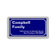 Fournissez des informations sur votre emplacement. La conception d'un panneau bleu de la route avec le nom de la famille et l'adresse en lettres blanches