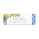 Étiquette de retour d'adresse Citrons aquarelle carreau bleu italien.