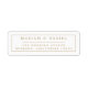 Tampon de retour d'adresse de mariage élégant et simple, dans un design moderne minimaliste, avec les noms des mariés dans une typographie à empattements stylisée avec une bordure élégante associée à un texte d'adresse personnalisable dans une police tendance pour un style chic et sophistiqué en or et blanc.