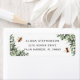 Conçu pour s'adapter à notre collection de papeterie de mariage à thème abeille et fleur d'oranger, ce modèle d'adresse de retour sucré et inspiré de la nature présente un feuillage botanique aquarelle vert, des fleurs blanches et des abeilles bourdonnantes. Personnalisez avec votre adresse de retour.