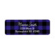 Étiquettes d'adresse de retour dans un style hivernal confortable avec un texte féminin sur un fond à carreaux bleu buffle. Personnalisez en ajoutant votre nom et adresse dans la fenêtre d'édition.