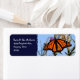 Étiquette Papillon monarque sur chardon violet bleu foncé