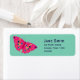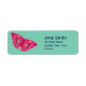 Étiquettes d'adresse personnalisées élégantes avec un design artistique d'illustration de papillon rose mignon en forme de dessin animé sur un fond de couleur personnalisable bleu aqua. Le texte est entièrement personnalisable pour inclure vos informations personnelles.