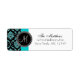 Conception mignonne avec motif vintage noir damassé avec effet turquoise IMPRIMÉ ou bleu aqua parties scintillant et initiale monogramme. Utilisez ce plaisir Retourner les étiquettes d'adresse avec votre initiale monogramme, nom et adresse pour vos invitations de mariage, mariage vous remercier cartes ou invitations de douche nuptiale et plus encore. Pour d'autres couleurs de parties scintillant, contactez le propriétaire du magasin. Copyright Elke Clarke.