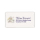 Étiquettes de adresse à l'image pastorale douce. Conçu avec un ange serein aux ailes jaunes tenant un crook berger. Assis à côté de 2 agneaux blancs moelleux. L'aquarelle s'écarte autour de l'image en se mélangeant à un arrière - plan blanc en coquille d'oeuf.