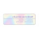Étiquettes d'adresse de retour avec votre nom dans une police de style rétro et une fine bordure entre votre nom et votre adresse de retour. Le texte est aligné à droite sur un arrière - plan motif arc-en-ciel pastel doux.