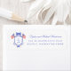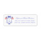 This return address label features a patriotic crest with US flags. You can add your monogram initials. Your names are in a script font and the address in all caps.