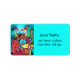 Étiquette PEACOCKS EN AMOUR, bleu rouge turquase vert