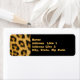 Photographie de cheveux léopard imprimé à gauche du étiquette avec arrière - plan noir personnalisable et texte personnalisable en orange pâle.