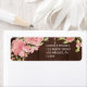 Mariage texte modifiable adresse de retour étiquette avec des fleurs de pivoines roses rustiques et des lumières chatoyantes à cordes sur arrière - plan de grange brun foncé. Idéal pour votre été | automne | élégant floral | jardin | pays rustique | mariage à thème jardin extérieur.