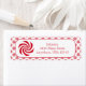 Cette étiquette d'adresse de retour comporte du texte rouge dans une police décorative à côté d'un bonbon rond de menthe rouge et blanche tourbillonnant sur un arrière - plan de bonbons de menthe poivrée tourbillonne dans un motif de style pois-pois. Personnalisez ce étiquette de Noël avec votre propre nom et adresse ou message personnalisé. Vous Pouvez Également Aimer :