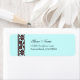 Étiquette d'adresse de retour personnalisée avec script et lettres standard sur un arrière - plan turquoise et un élément médiéval en chocolat. Cliquez sur Customiser pour modifier les polices ou les couleurs, et même enregistrer votre conception pour plus tard.