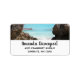 Étiquettes d'adresse avec une photographie panoramique représentant la côte tropicale des Bermudes. De gros rochers déchiquetés contrastent avec la mer turquoise brillante.