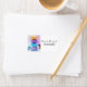 Étiquettes de adresse avec une délicieuse photo avec une pile de macarons colorés.