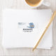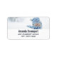 Étiquettes de adresse avec une jolie photo d'un petit bonhomme de neige. Debout dehors en hiver avec de la neige qui tombe tout autour. Ce mignon petit gars est habillé en casquette tricoté bleu et foulard.