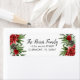 Des poinsettes rouges, des pinecones et des branches d'épinette poussent sur un arrière - plan blanc. Style rustique ferme Noël étiquettes d'adresse de retour avec un script facile à customiser nom de calligraphie modèle et modèle d'adresse en noir. Une touche mignonne et fantaisiste pour vos cartes de Noël et vos invitations.