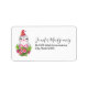 Étiquettes de adresse au design mignon et fantaisiste avec un adorable pingouin portant un chapeau de santa rouge. Derrière un bouquet de fleurs aux sucres de canne rayés roses et blancs.