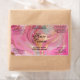 This elegant product label for cosmetic bottles features a pink and faux gold glitter background. This label contains space for your product name, business name, product weight, ingredients, instructions, social media, and business address. This label measures 3.75 inches by 2 inches (95 mm by 51 mm) and is suitable for bottles with a diameter of 1.2 inches (31 mm) or more such as 2 to 4 oz (60 to 120 ml) bullet, cylinder, and boston round bottles. It can also be used for cosmetic jars and other types of cosmetics packaging.