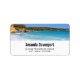 Étiquettes de adresse avec une photo d'une plage sur l'île grecque de Crète. Une belle plage tropicale bleue au surf mousse. Merveilleuse destination de voyage tranquille.
