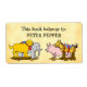 Un étiquette de livres sur mesure avec des lettres rétro et l'art vintage d'un chien jouet, cheval, cochon et éléphant sur roues, restauré à partir d'un livre d'histoire antique.