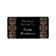 Une plaque d'identité personnalisée ou un étiquette de texte personnalisé avec bloc antique et lettre noire et art médiéval vintage restauré à partir d'un manuscrit éclairé avec fleurs colorées et feuilles défilant sur un arrière - plan noir.