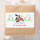 Un étiquette d'une plaque d'identité de l'enseignant montrant une scène d'école qui semble avoir été colorée par un enfant avec des crayons en rouge, jaune, bleu et vert qui entourent l'illustration. Schoolhouse est rouge avec des illustrations d'herbe, un nuage, des fleurs et le soleil qui accentue le design. Texte bleu : "Ce livre appartient à" Personnalisez avec votre nom en rouge.