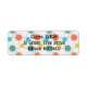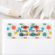 Ces étiquettes d'adresses de retour ont un design moderne du milieu du siècle de cercles avec des lignes derrière en orange, jaune, turquoise et vert.