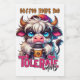 A funny, sarcastic, and colorful design showcases an adorable highland cow clutching a takeout coffee cup. The cup features a coffee bean and a black lid. The cow, with its big blue eyes and black-and-white fur, adds charm to the design. The vibrant text reads, "Coffee helps me tolerate idiots." This design is available on various products, making it a perfect gift for coffee lovers.