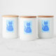Cette étonnante feuille de étiquettes de bocal pour animaux de compagnie présente une image art numérique d'un mignon chat bleu avec une queue bouclée. Ses yeux sont bleu pâle avec des élèves noirs. Il porte un arc rose dans ses cheveux et un collier bleu brillant autour du cou avec un jeton bleu dessus. Le design est parfait pour célébrer un nouveau chat. Il y a du texte personnalisé pour que vous puissiez inclure le nom de votre chat.