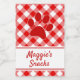Label your pup’s treats in style with this cute red and white gingham food label! Featuring a classic checkered pattern, a sweet paw print detail, and space for your dog’s name, this sticker is perfect for treat jars, gift bags, or homemade goodies. A charming choice for cottagecore pet lovers and pink-loving pups!