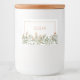 Conteneur alimentaire avec motif floral doux et aquarelle. Fleurs dans des couleurs vert acajou et sauge. Une façon élégante de étiquette de vos contenants alimentaires.