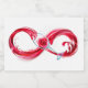 Infinity symbole of continuous stream of red pouring into glass glass glass on white background.