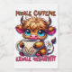 A funny and sarcastic design showcases a cute highland cow with big blue eyes, sitting contentedly in front of a vibrant daisy while holding a steaming cup of black coffee. The cow's soft brown fur adds to its charm. Bright, colorful text reads, "Inhale caffeine, exhale negativity." This delightful design is available on a variety of products, making perfect gifts for coffee enthusiasts.