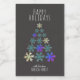 Un bocal élégant et festif étiquette pour les vacances de Noël avec un désir de Joyeux vacances. Les flocons de neige de différentes couleurs en forme d'arbre de Noël sont sur l'arrière - plan gris foncé ou noir. Le texte est en blanc. Personnalisez le étiquette avec votre texte, votre salutation et votre nom. Élégant cadeau de Noël pour vos amis, famille, collègues, ...