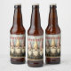 Beer lable with five cute Gnomes with long white beards and pointed hats. Fun lable for all the beer drinkers. Merry Christmas is written at the top in bold red letters.